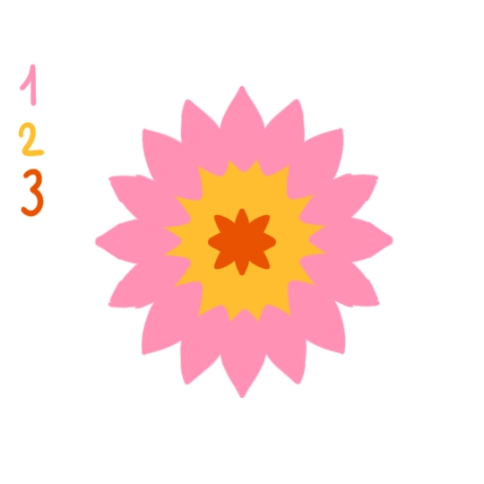 Choisis les 3 couleurs de ton tournesol (réfère-toi au schéma si tu as besoin d’aide), je sélectionne les couleurs de fils qui s’en rapprochent le plus dans la gamme de fils que je travaille, je t’envoie les photos pour validation et c’est parti !